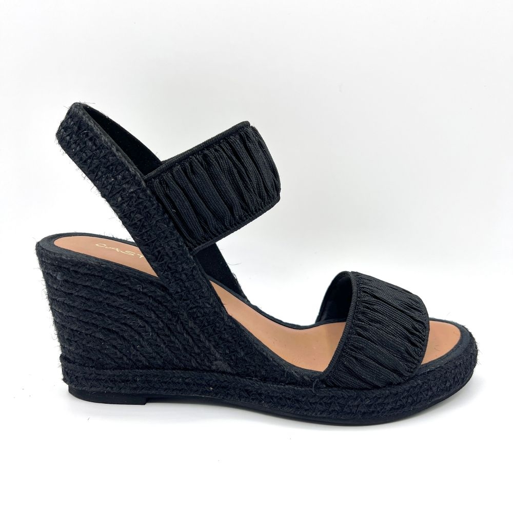 Sandalia de tejido elástico, con suela de micro y plataforma de yute.