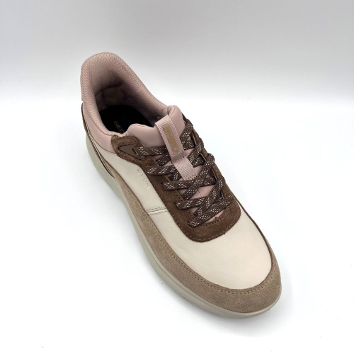 Deportiva para mujer de diseño contemporáneo con un sistema que permite un calce rápido sin utilizar las manos, garantizando una gran comodidad a la hora de caminar. En esta versión beige y marrón, está realizada en suave napa adornada con detalles de ante para un aspecto sofisticado y versátil. Spherica™ Plus ofrece una excelente amortiguación que proporciona un impulso extra a cada paso, ideal para un estilo de vida urbano y dinámico.