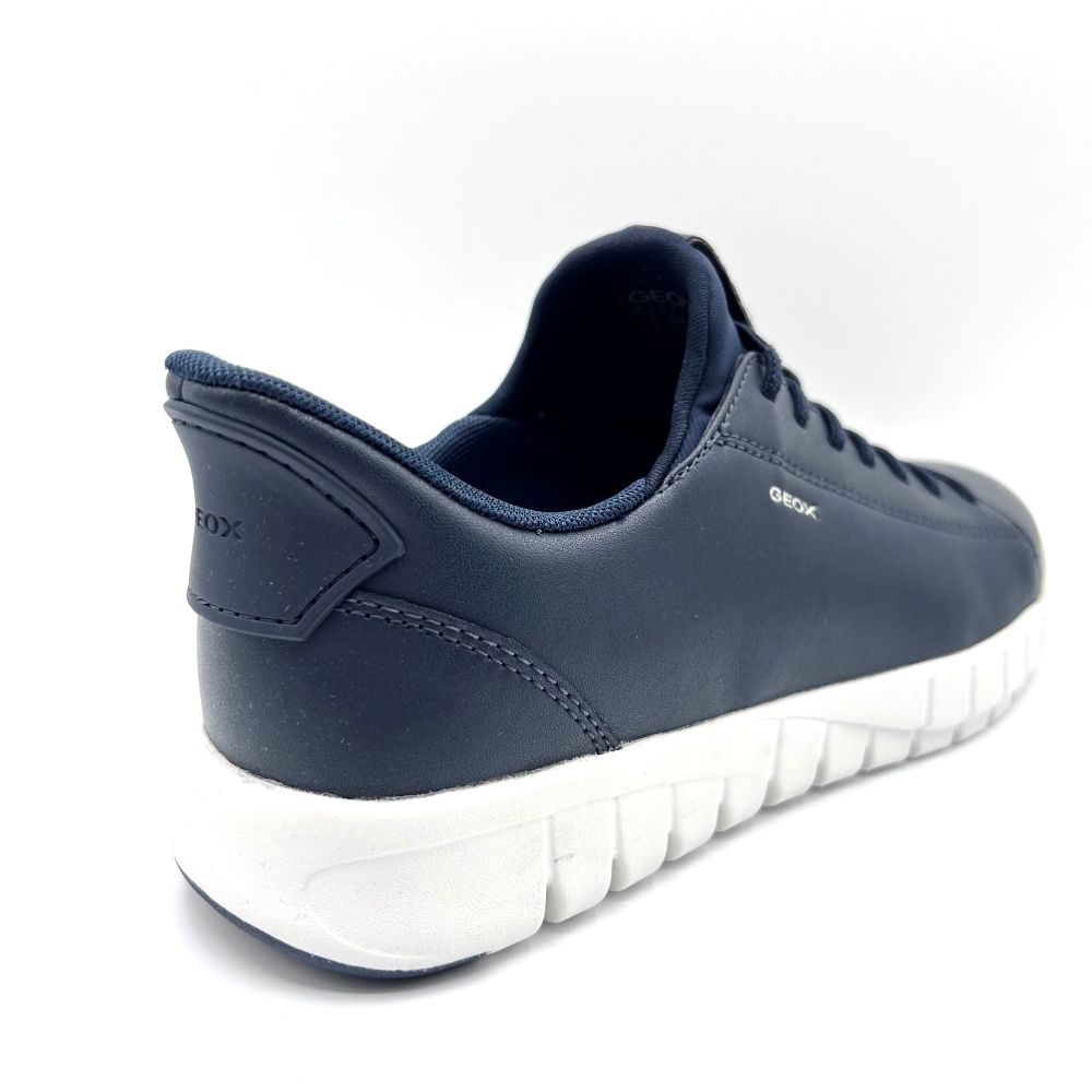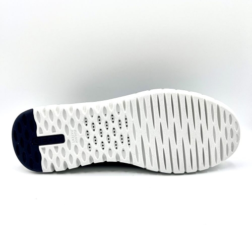En esta versión azul marino, tiene una moderna empella de piel. Cómoda y transpirable, Flextride Plus es ideal para la vida en la ciudad.