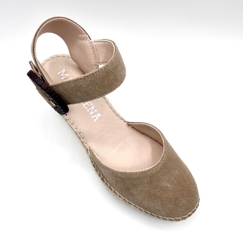 Sofisticadas y atemporales. Las alpargatas de cuña Yune, construidas en un suave serraje, son características por su hebilla.