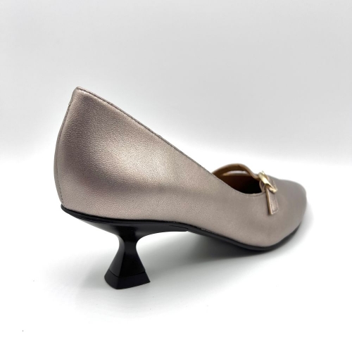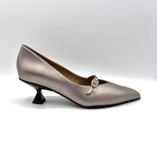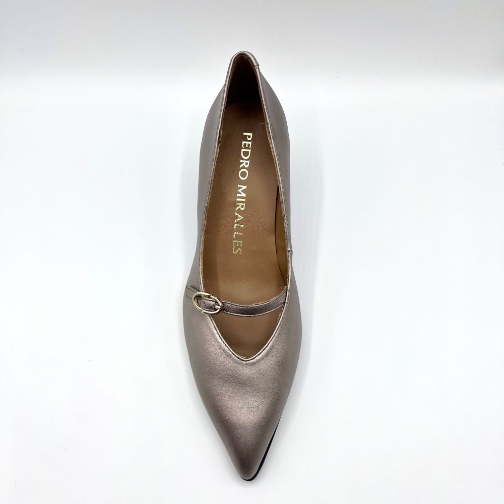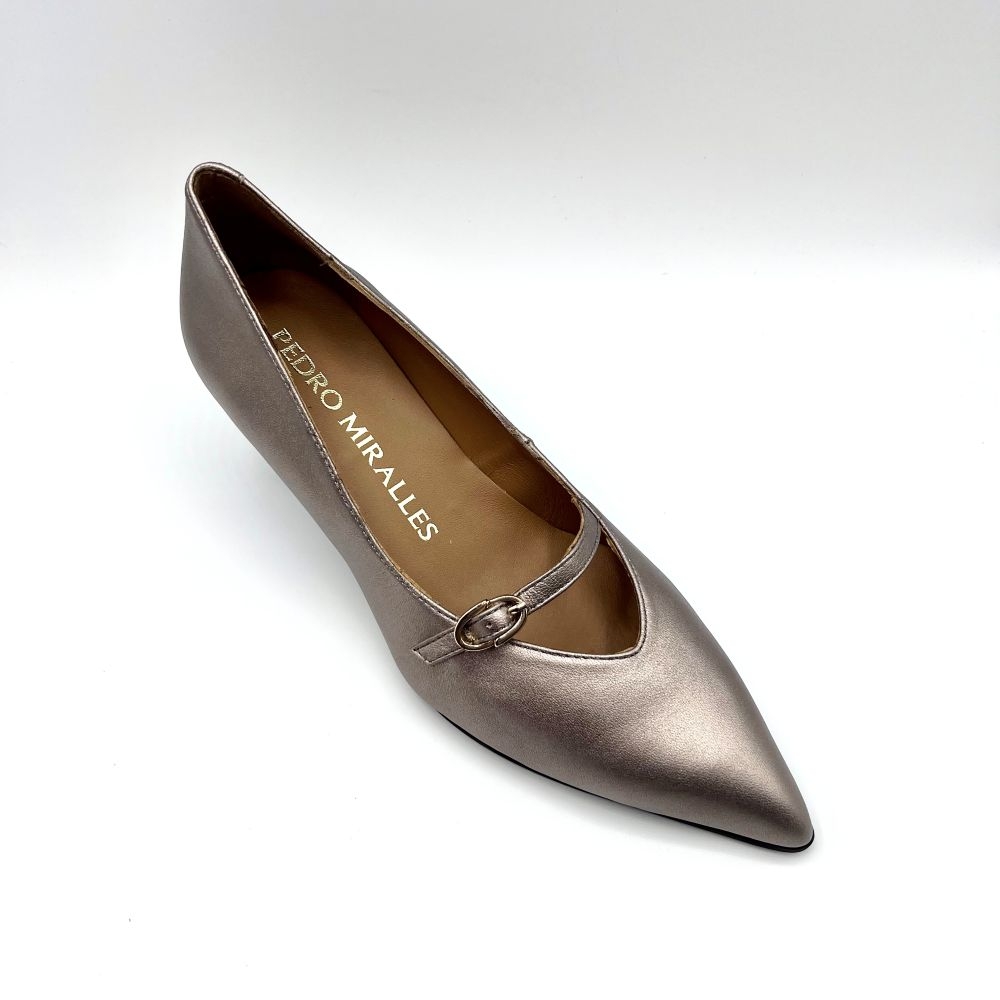 Zapatos de tacón de piel metalizada. Un diseño que ofrece comodidad, elegancia y estilo a partes iguales. Cuentan con una tira con hebilla sobre el empeine, que añade un toque de distinción al modelo.