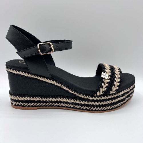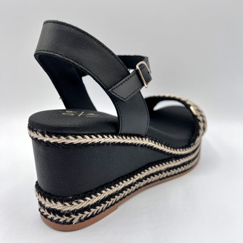 Sandalia de cuña baja negra. Fondo de armario imprescindible, ofrece pisada estable y estilo atemporal.