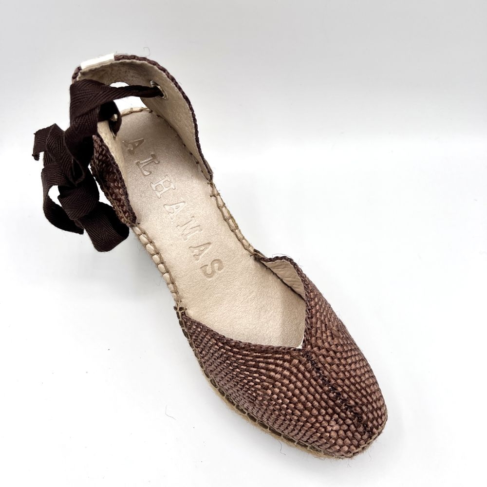 La alpargata de cuña media plataforma, es un modelo icónico. Una alpargata valenciana de escote corazón con cintas que podrás llevar con tus looks especiales y también con los del día a día. Podrás darle un toque especial porque las cintas de algodón se pueden cambiar.
