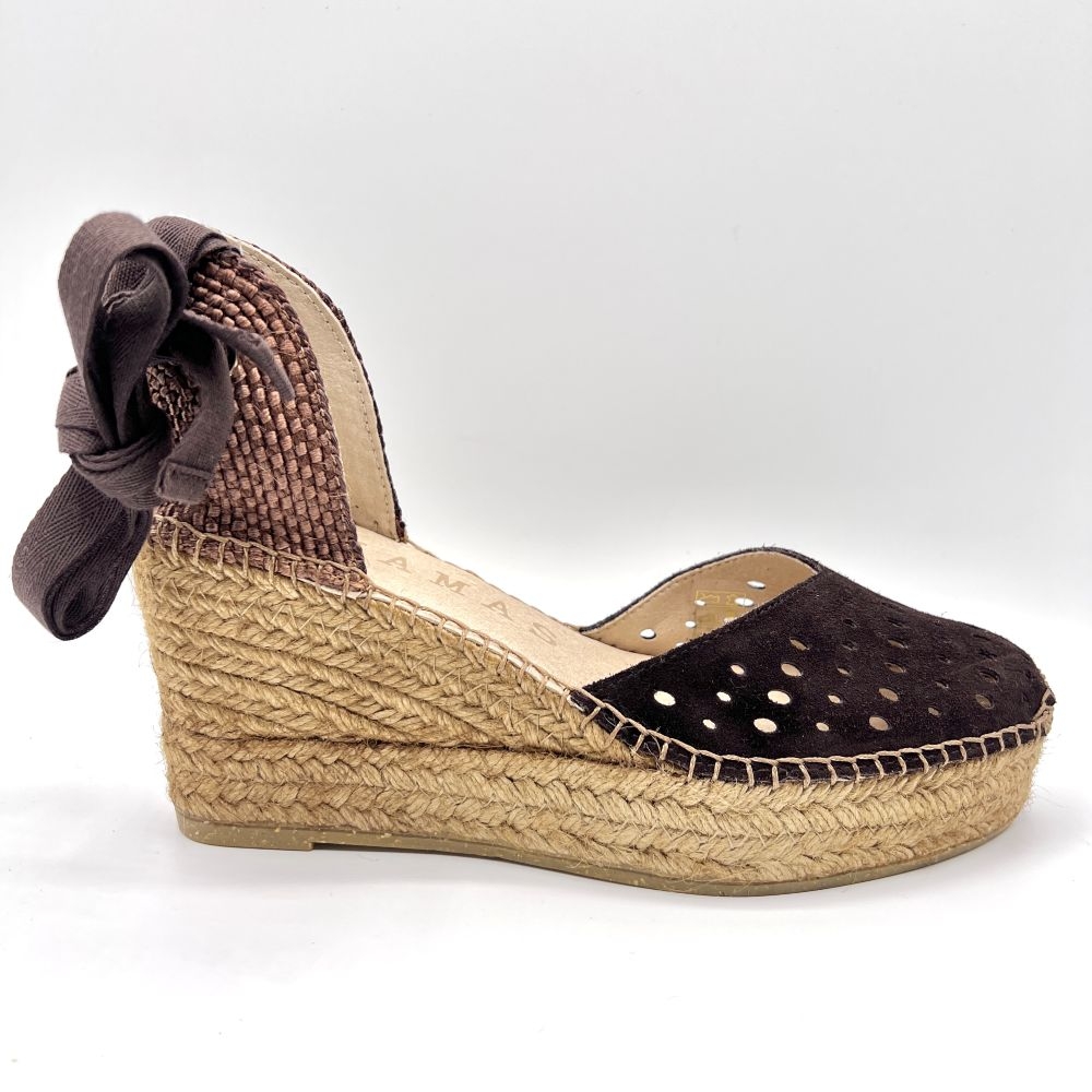 La alpargata de cuña media plataforma, es un modelo icónico. Una alpargata valenciana de escote corazón con cintas que podrás llevar con tus looks especiales y también con los del día a día. Podrás darle un toque especial porque las cintas de algodón se pueden cambiar.