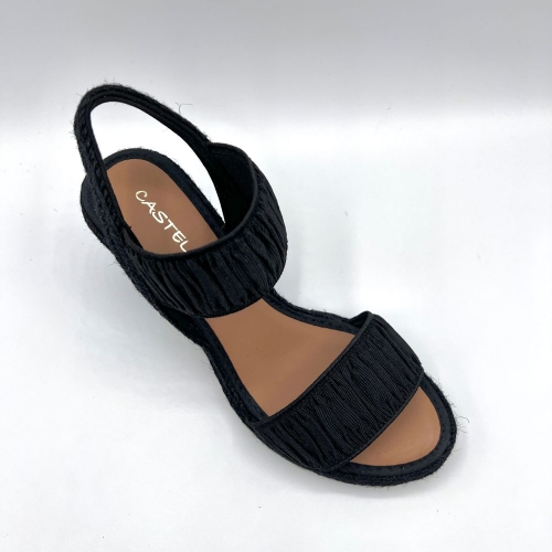 Sandalia de tejido elástico, con suela de micro y plataforma de yute.