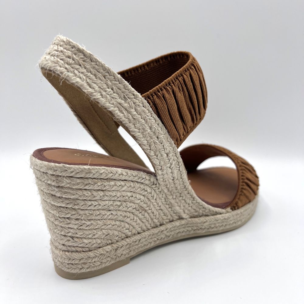 Sandalia de tejido elástico, con suela de micro y plataforma de yute.
