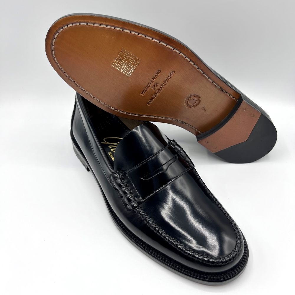 Cosido a mano, suela y empeine en pieles de la mejor calidad.