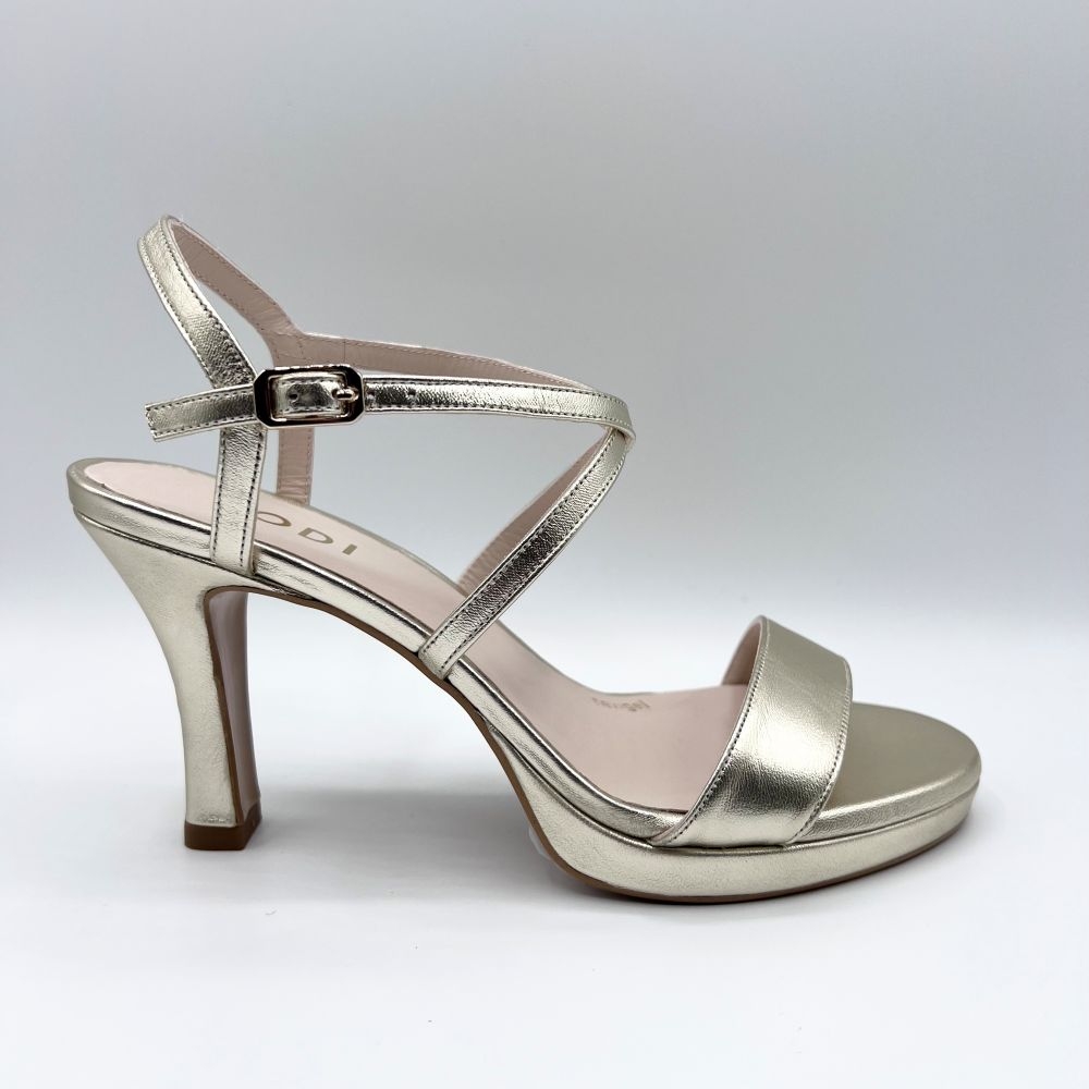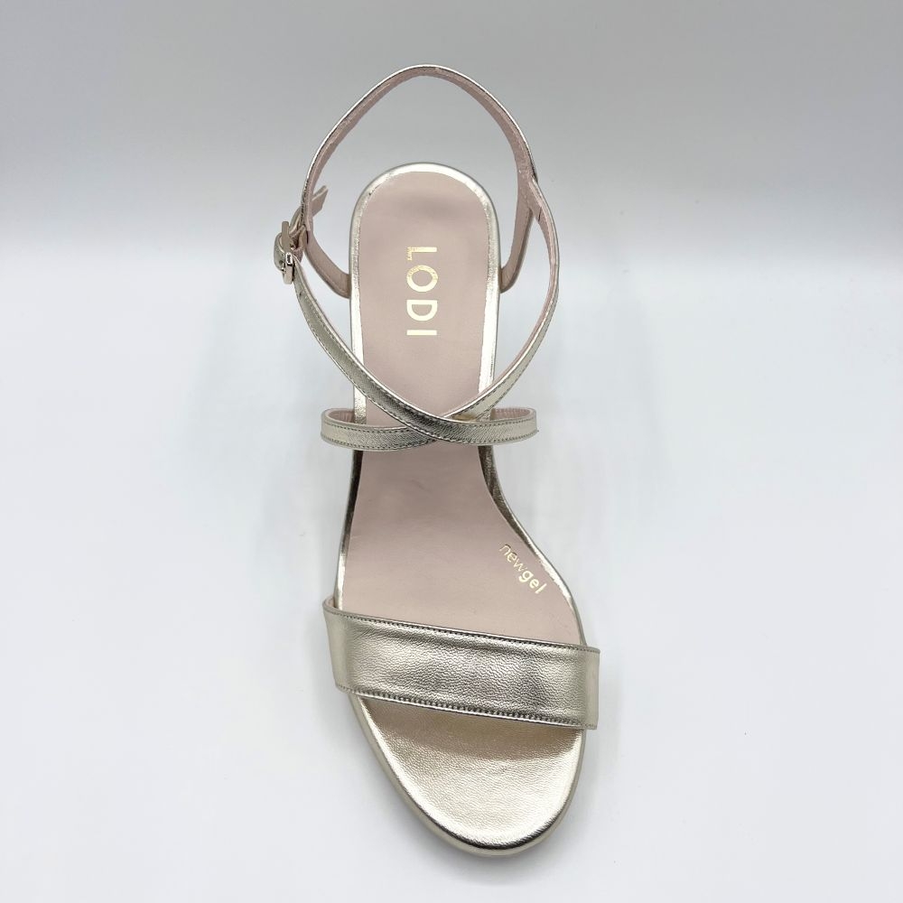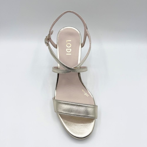 Sandalias de mujer LESERA de LODI en piel metalizada color cava.